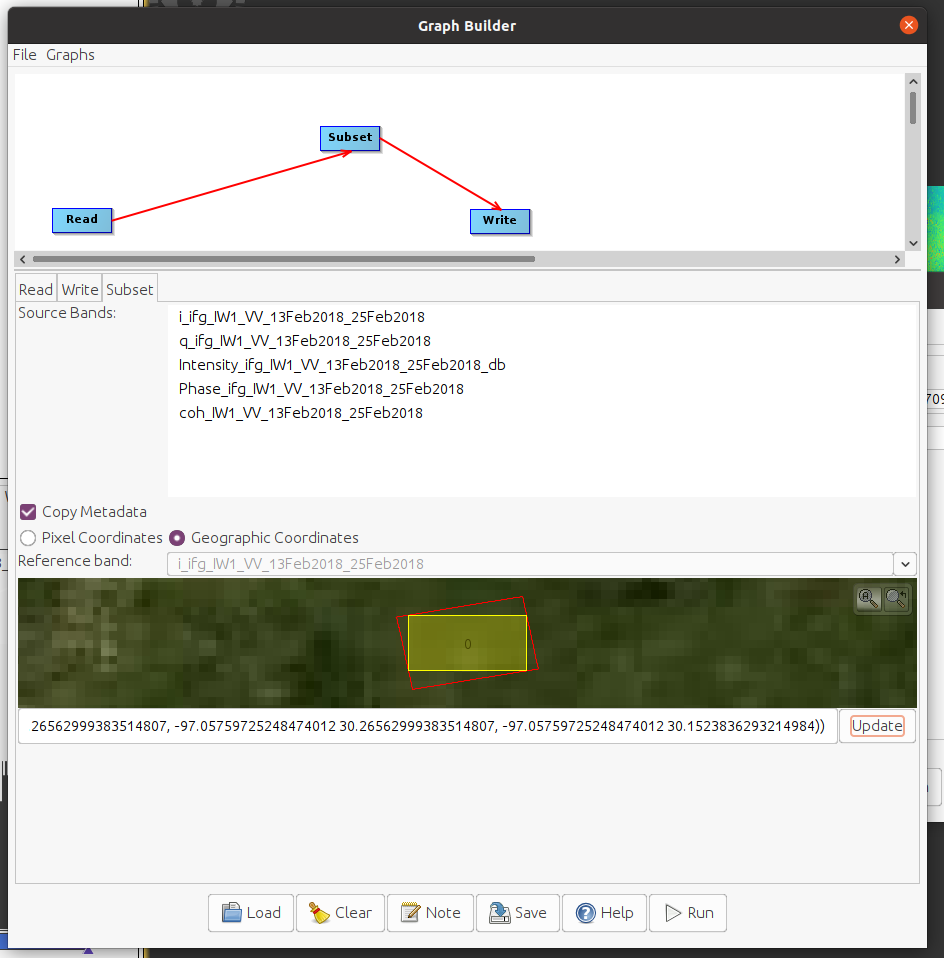 The screenshot of error and steps for creating subset and error during snaphu export are