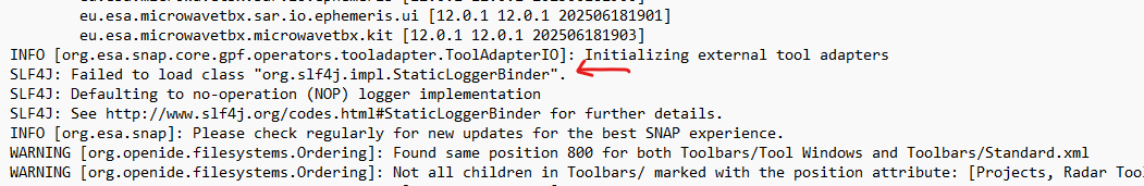 Running the SNAPHU unwrapping plugin in SNAP is failing and the log message indicates: SLF4J: Failed to load class “org.slf4j.impl.StaticLoggerBinder”. Does anyone know what this means and how to fix it?